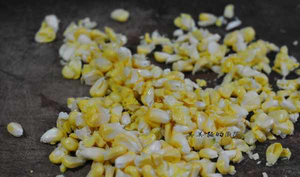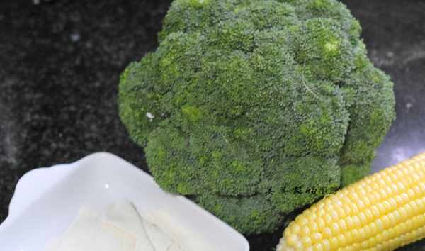 玉米剝下來,用刀子稍微切碎點。西蘭花洗幹凈,用刀將花朵部分都切下來。