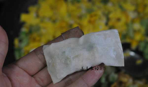餛飩皮四周要抹上一層薄薄的水,不要太多,便於黏合。太多瞭的話,容易互相粘連。