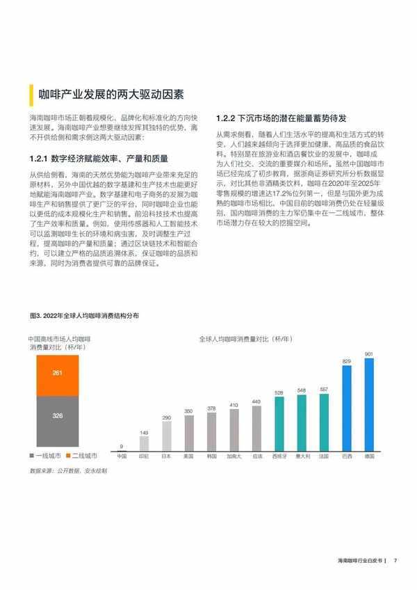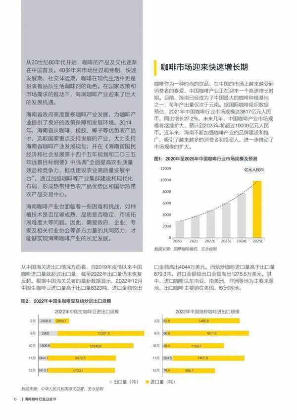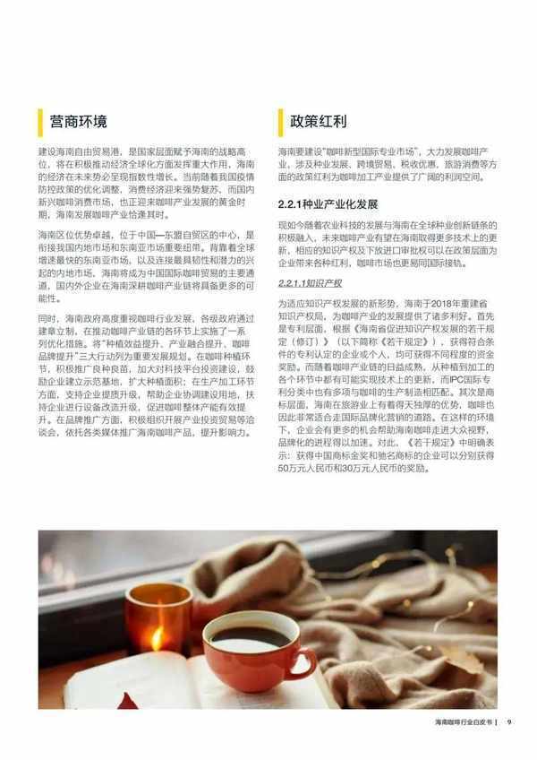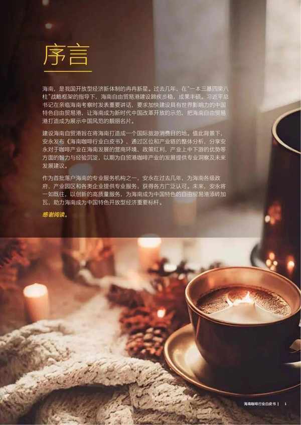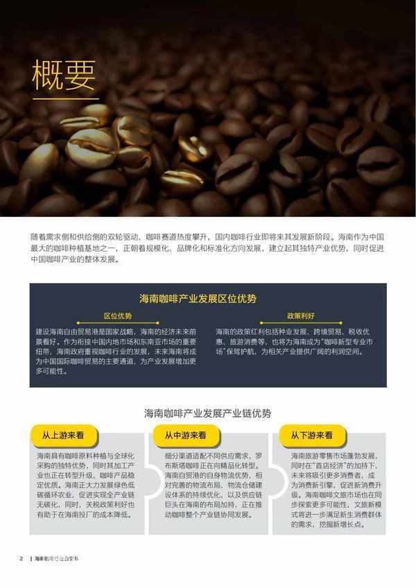建設海南自由貿易港是國傢戰略,海南的經濟未來前 景看好。作為銜接中國內地市場和東南亞市場的重要 紐帶,海南政府重視咖啡行業的發展,未來海南將成 為中國國際咖啡貿易的主要通道,為產業發展增加更 多可能性。