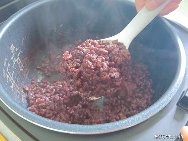 3、電飯煲跳閘後開蓋,拌勻後再次倒入和豆子持平的清水,繼續按煮飯鍵再次煮一遍。再次煮熟後的豆子就非常的軟爛瞭。