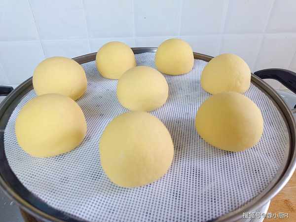 7、體積稍微變大瞭一些,現在就可以上鍋蒸瞭,大火10分鐘,關火燜2分鐘,出鍋,哇,胖乎乎的一鍋,非常的柔軟蓬松,切開看一下,好漂亮啊,白色的饅頭裡面是金黃金黃的面條,的確非常有特色,好看又好吃。
