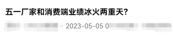 5月5日,有酒商通過個人自媒體賬號以《五一廠傢和消費端業績冰火兩重天》為題發佈視頻,明確指出瞭“廠傢與商傢”的五一感受不同,一個是快速增長的業績,一個是賣酒難的現狀。