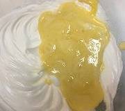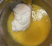8.先往蛋黃糊裡加1/3的蛋白霜,翻拌手法拌勻。