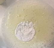 3.繼續打發到泡泡變小,再加1/3糖粉。
