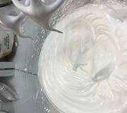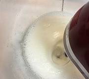 4.打發到蛋白細膩略有紋路的時候,再最後1/3糖粉,繼續高速打發。