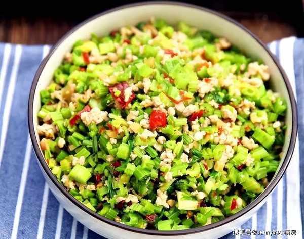 芹菜清洗幹凈,切碎待用。蔥薑蒜切末待用。
