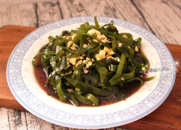 涼拌海帶絲做法:1,海帶切絲焯水備用,大蒜切末。2,把蒜末放到海帶絲裏,加入一勺醋,一勺生抽,鹽,攪拌均勻。3,加上幾滴香油,攪拌均勻即可。4,裝盤上桌。