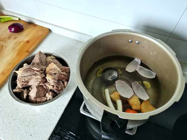 先把牛肉清洗幹凈,放鍋裡焯水,焯水後多清洗幾次,直到清洗後的水變清澈就好。