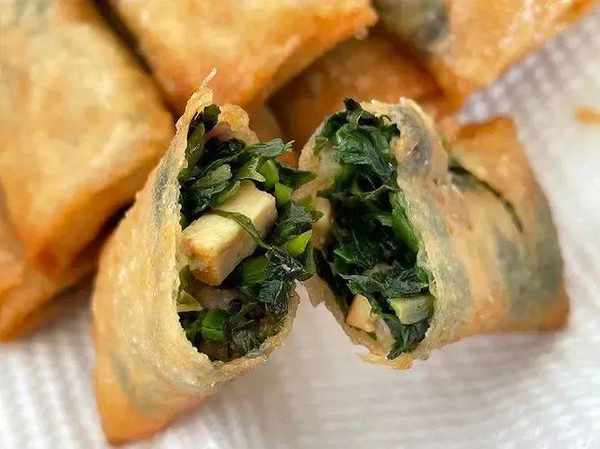 9 卷到春卷皮的2/3處把兩端往中間折起。