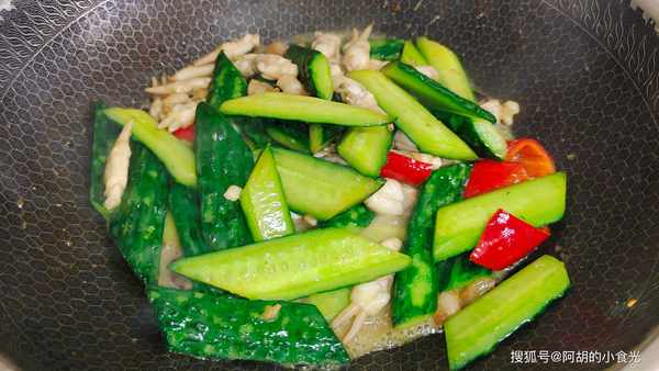 黃瓜爆炒的時候比較難入味,所以我事先醃制瞭一番,可以幫助先入一個底味,最後的勾芡也是讓黃瓜更有滋味的一個方法。