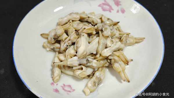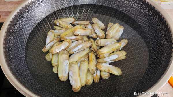 第三步:鮮活的蟶子用清水多多地洗幾遍,徹底地洗幹凈,而後涼水下鍋開大火,來少許料酒和蔥薑,燒開後蟶子一開口就關火,撈出後稍微涼一涼,再將蟶子肉取出,再將蟶子肉洗一遍備用。