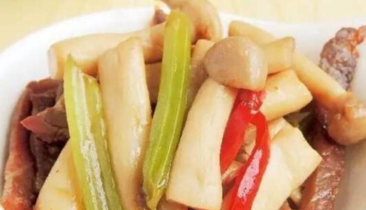 1、蘑菇洗凈切片,芹菜擇好洗凈切寸段,胡蘿卜去皮切菱形片;