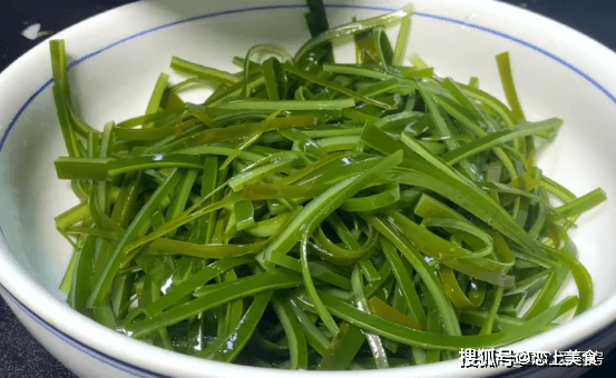 準備一把香菜切成長段。鍋中水開之後,加入海帶絲焯水30秒鐘。然後再撈出過涼,之後再將海帶絲瀝幹水分倒入大碗裡面。