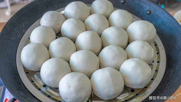 8、起鍋燒水,放入篦子,表面刷油防粘,放入豆包,每一個都挨著放,然後蓋上蓋子開中火蒸15分鐘。