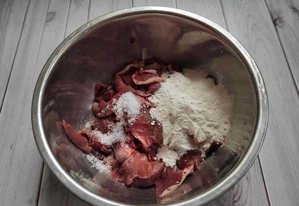 1、豬心處理幹凈切片,加入鹽和面粉,抓洗片刻,多換幾次清水,直到水清為止。