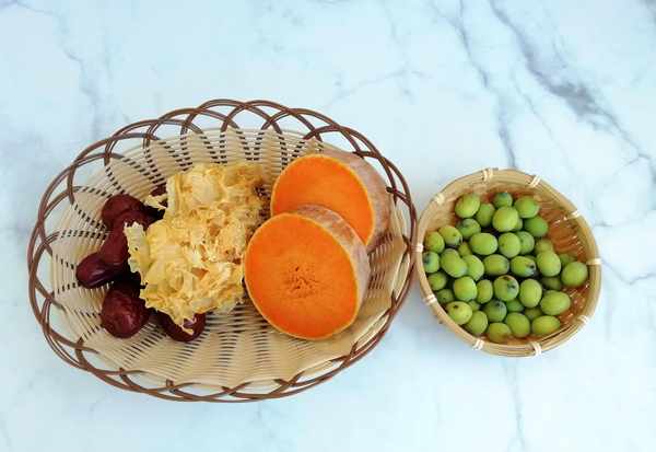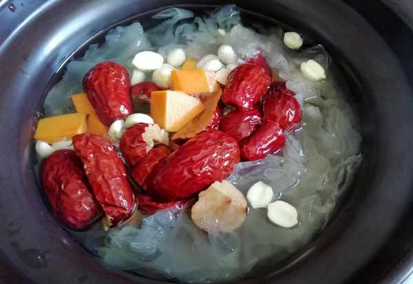 食材:新鮮蓮子、南瓜、銀耳、紅棗、冰糖。