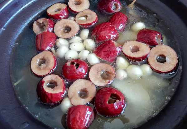 3、把紅棗放入砂鍋中,繼續燉20分鐘,出鍋前撒入鹽調味就可以瞭。