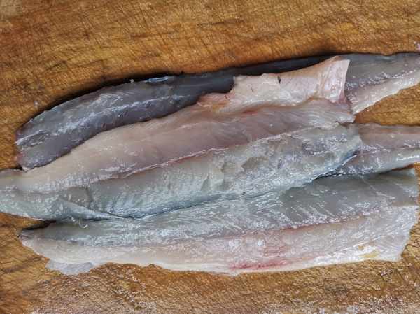 第三步:鮁魚選擇一斤多一條的就可以,把鮁魚魚肉和魚骨分開,把魚肉用刀刮下來,鮁魚沒有雜刺,這樣刮下來是不會有魚刺的,很容易處理。鮁魚肉質細膩味道鮮美、營養豐富,含豐富蛋白質、維他命A、礦物質等,而且鮁魚體內還含有含有豐富的DHA,利於孩子的智力發育。所以多吃鮁魚會使人變得聰明哦。