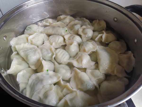 第九步:鍋裏放入適量得清水燒開,煮上餃子用勺子輕輕得推動餃子防止粘鍋,蓋上蓋子煮熟即可出鍋。
