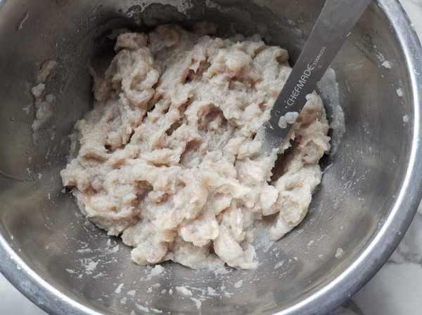 第六步:充分攪拌均勻,鮁魚餡就調拌好了。這樣調拌處得餡料爽滑多汁特別鮮美。