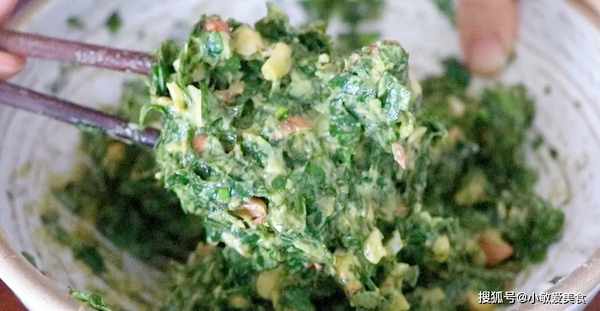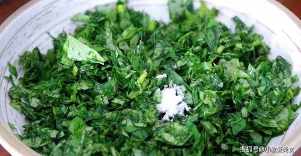 1、一把紅薯葉洗凈切成碎末,加小半勺食用堿,一是可以中和草酸更健康,二是可以保證顏色翠綠。