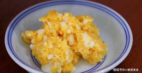 6、十分鐘到瞭,打開蓋蓋子,把紅薯餅取出放涼,雞蛋剝殼之後,放入蒜泥中倒均勻,再加少許小磨香油攪拌均勻,特別開胃好吃的雞蛋蒜就做好瞭。