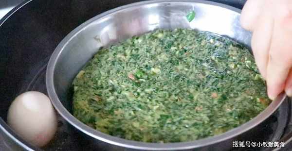 4、平底盤鋪上籠佈或油紙防粘,倒入菜糊,抹平整開水上鍋大火蒸十分鐘,順便再蒸一個雞蛋。
