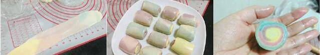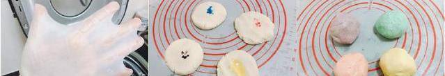 油酥:低筋面粉180g,豬油90g,食用色素4-5種