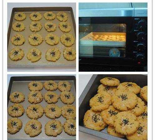 9.壓扁後,刷上少許蛋液,撒上黑芝麻,烤箱上下管170度預熱