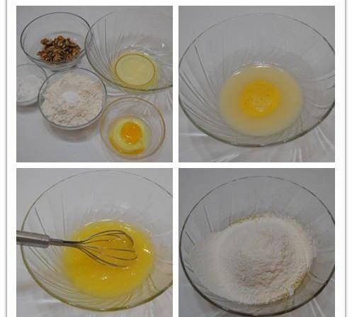糖粉倒入玉米油內拌勻,雞蛋打散後加入3/4進去(剩餘的用作刷餅面)