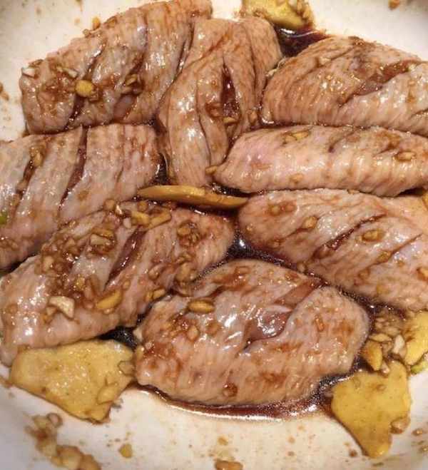 食材:雞翅中若幹個,生抽、老抽、蠔油、料酒、胡椒粉十三香、鹽、薑蒜、蜂(塗抹雞翅的表面)、孜然粉
