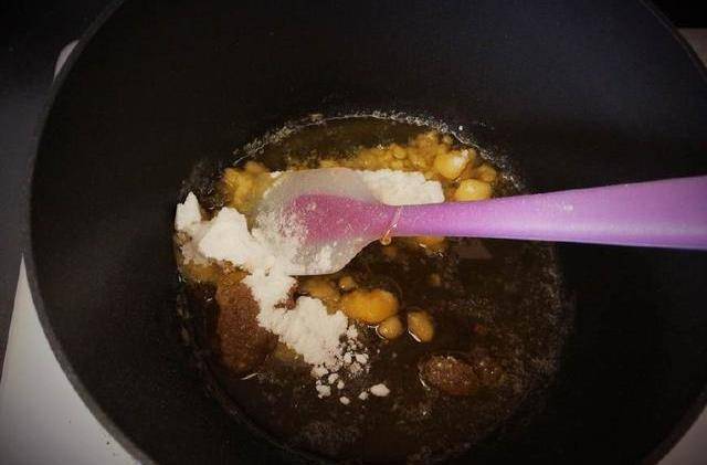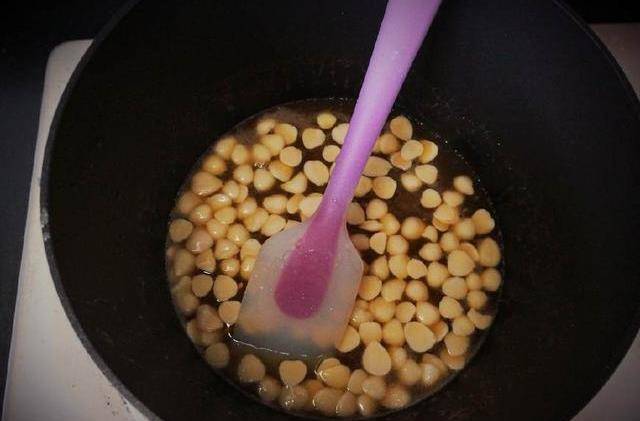 1.首先制作糖心,把黃油倒入小鍋中融化,倒入蜂蜜和糖粉熬制成糖漿