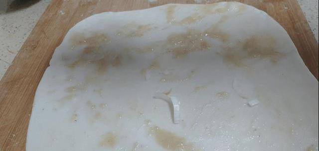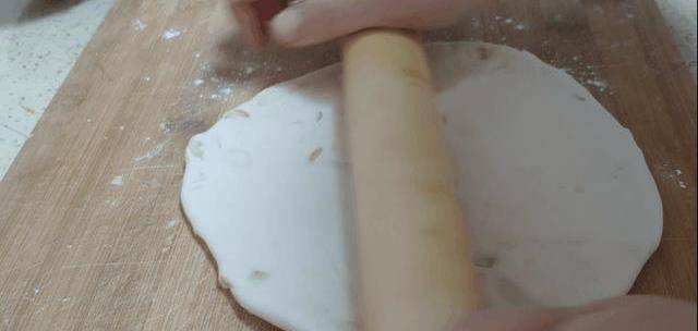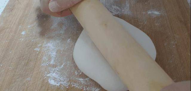 11.用搟面杖搟開面團,厚度大概3—5mm左右。