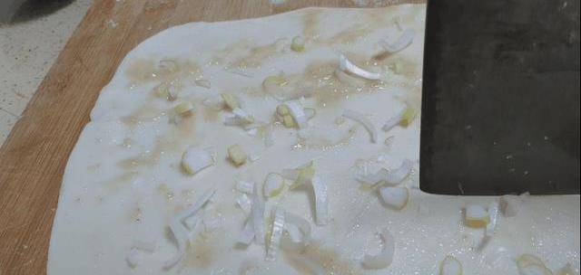 想念街邊的蔥花千層餅瞭,一口大鍋遠遠地就開始飄過來蔥香味兒,揭開鍋蓋,黃澄澄、油亮亮的餅子就映入眼簾,再借助一把長尺子把餅從鍋中挪到案板上,老板再用菜刀哐哐哐幾下,把餅子切塊兒,來買的人絡繹不絕~今天中午也自己嘗試在傢做瞭一下這個千層餅,做法簡單,隻需要輕松一疊就能做好,烙出來的餅子層層分明,外酥裡軟,超好吃!