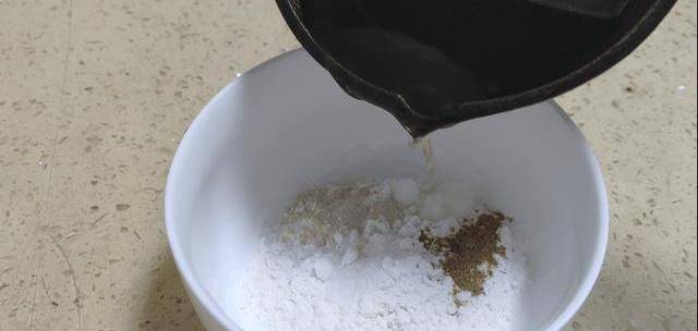 3.餳發面團的時候來做油酥。面粉放入小碗中,加入五香粉和椒鹽。