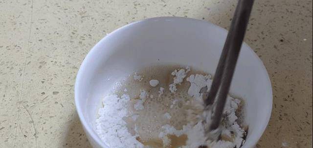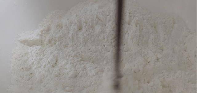 4.熱油澆入面粉中,攪拌均勻,油酥就做好瞭。