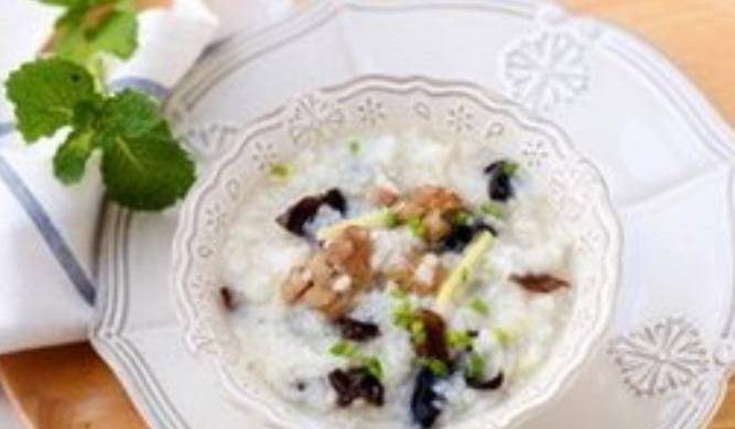 大米1杯、豬腰1個、木耳5朵、食鹽1/2茶匙、雞精1/2茶匙、薑1小塊、細香蔥1根、水適量。