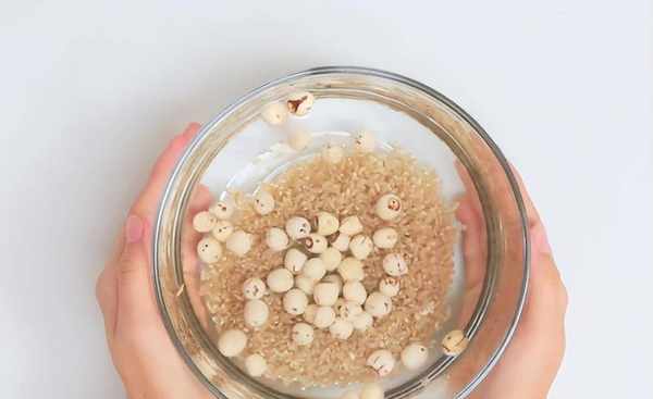 2、 準備半碗蓮子,清洗幹凈,倒入清水浸泡1小時。