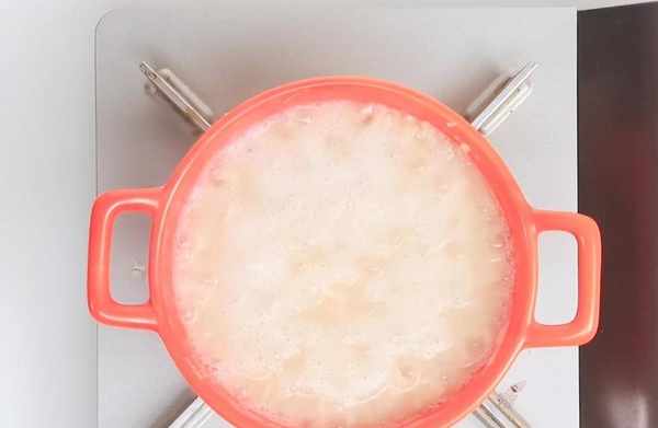 5、 將山藥泥放入鍋中,煮沸後關火就做好瞭。