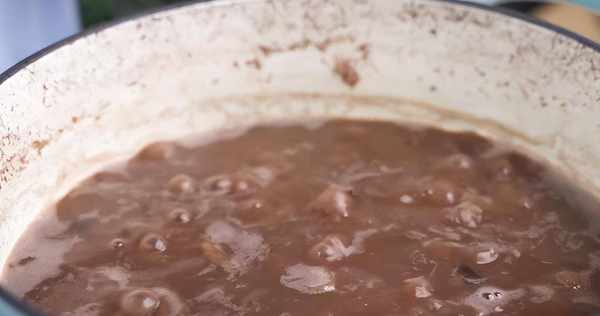3、 準備一個砂鍋,倒入泡好的糙米與蓮子,加入清水,大火煮沸後,轉小火燉煮1小時。