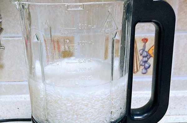 泡好的米放入破壁機加220克清水,按果蔬鍵打三遍,最後一遍的時候把白糖加進去一起打。