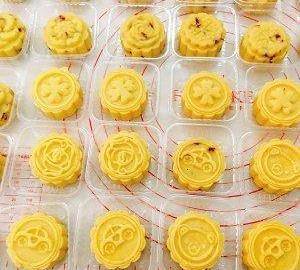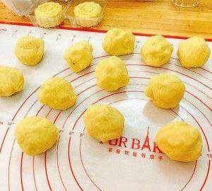 用50克的月餅模,將綠豆泥分成每個35克的小劑子,搓成圓球狀(按個人喜好,可以分成40克或50克的小圓球)。