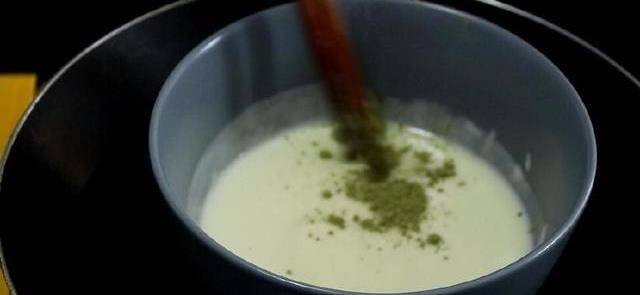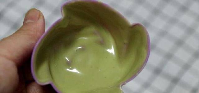 往巧克力醬裡面加入適量的抹茶粉,攪拌均勻。