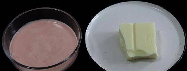 等巧克力凝固以後,取出,倒入融化後的冰淇淋,不要倒太滿。放入冰箱繼續冷凍。(註意:這裡是冷凍,不是冷藏,就是冰箱能結成冰塊的那層。)