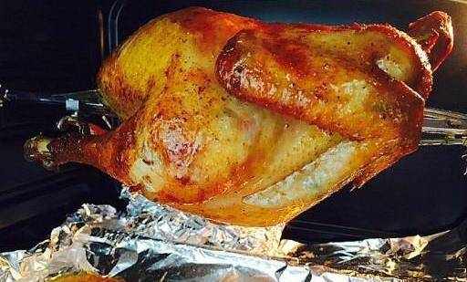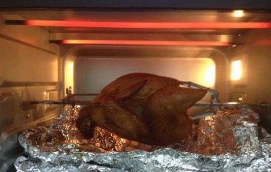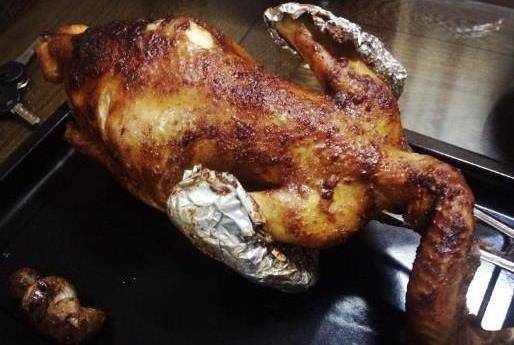 用刷子刷滿雞的身體。烤盤貼滿錫紙,上面加一個烤架,烤箱預熱120度,放上烤雞中層烤制100分鐘。期間每隔30分鐘刷一次黃油蜂蜜水。慢慢變紅成熟。烤的時候要等著烤雞的顏色,滿意瞭就覆蓋錫紙。出爐,好香啊!教你用烤箱做烤雞,一個烤箱就搞定,香嫩多汁,不信你試試!