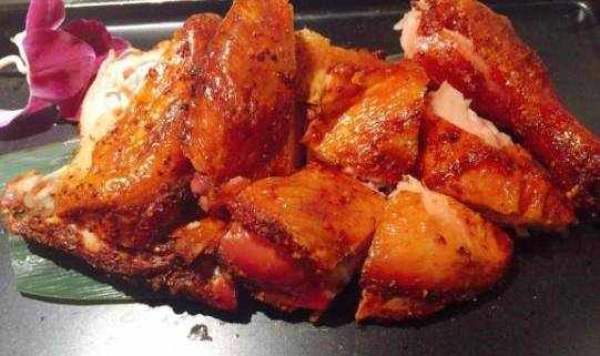 放入雞,蓋上蓋子。放冰箱冷藏十個小時之後,取出雞,廚房紙擦幹水份,擱在一邊風幹2個小時。(喝湯的瓷勺)食鹽一平勺,蠔油三大勺,老抽兩大勺,蜂蜜三大勺,黑胡椒兩大勺,混合後均勻。調料混合後均勻地給雞做個按摩。肚子裡面也要塗抹均勻。好好按摩一下,腹腔也要均勻塗抹調料。建議特別不喜歡雞身上有黑胡椒顆粒的可以加混合的調料用漏網過一下再抹到雞身上。