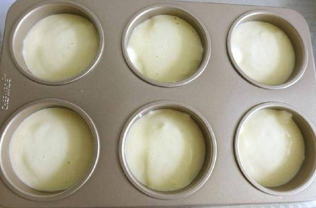 3、烤箱提前預熱170度。利用這個時間將蛋糕糊倒入蛋糕模具裡面,裝八分滿即可。沒有蛋糕模具的也可以用紙杯,裝完之後上面撒上一些白芝麻,口感更香。烤箱預熱好之後放入中層170度烤15分鐘.烤箱性能不一樣,一定要多觀察,根據情況適當調整。