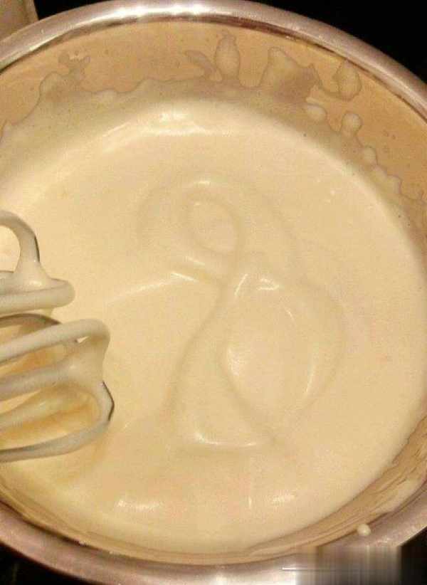 1、雞蛋,白糖和蜂蜜一起放到一個無水無油的容器中,不用蛋清蛋黃分離,用電動打蛋器打到6分發(提起打蛋器能畫8字就行瞭)