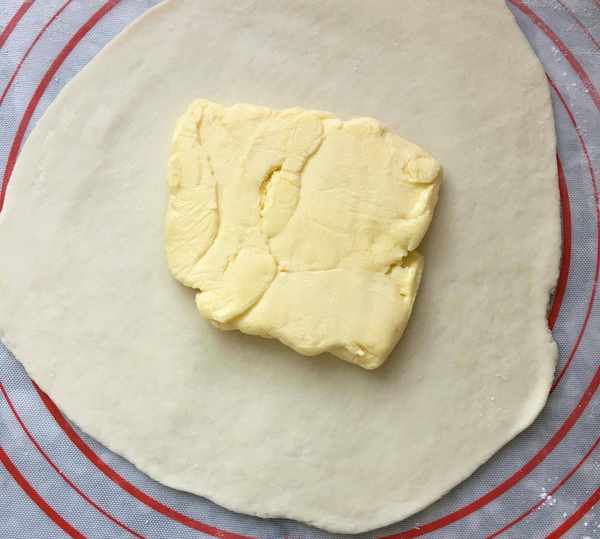 配方二:低粉110克,高粉15克,水55克,黃油20克,鹽1克,糖2克,裹入用的黃油90克。
