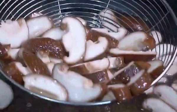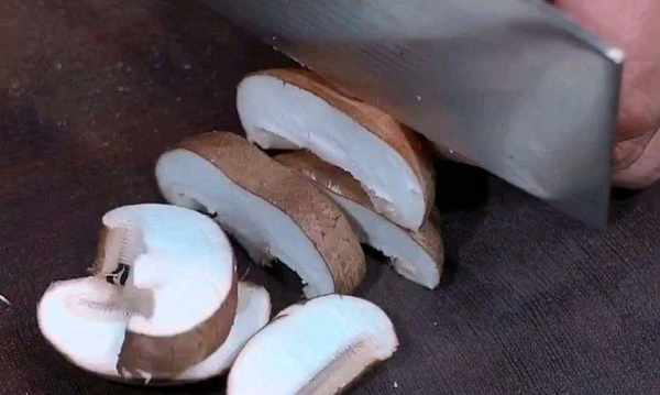 3、把買回來的香菇清洗好切成厚厚的大片備用。